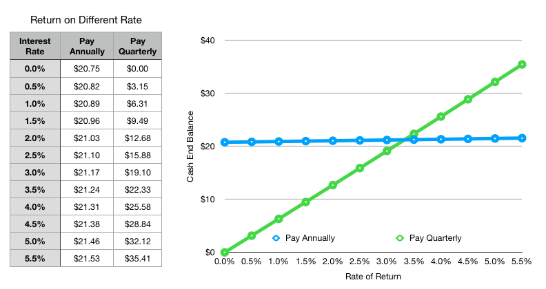 If the receiver passes away, whatever left in the account will be passed on to their estate. Now, let’s go back to our 2.5% return example.