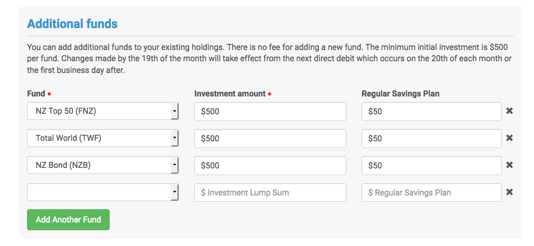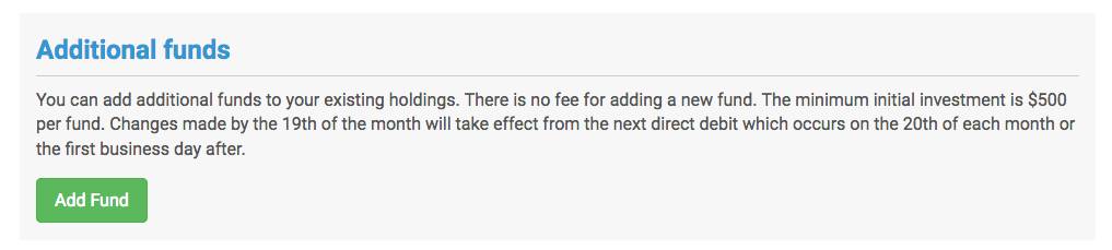 You decide how much you want to invest and how frequently. You can invest on a weekly, monthly, quarterly or six-monthly basis. Also, you can choose when the plan start and end. Below is an example for $100 invested monthly with no end date.